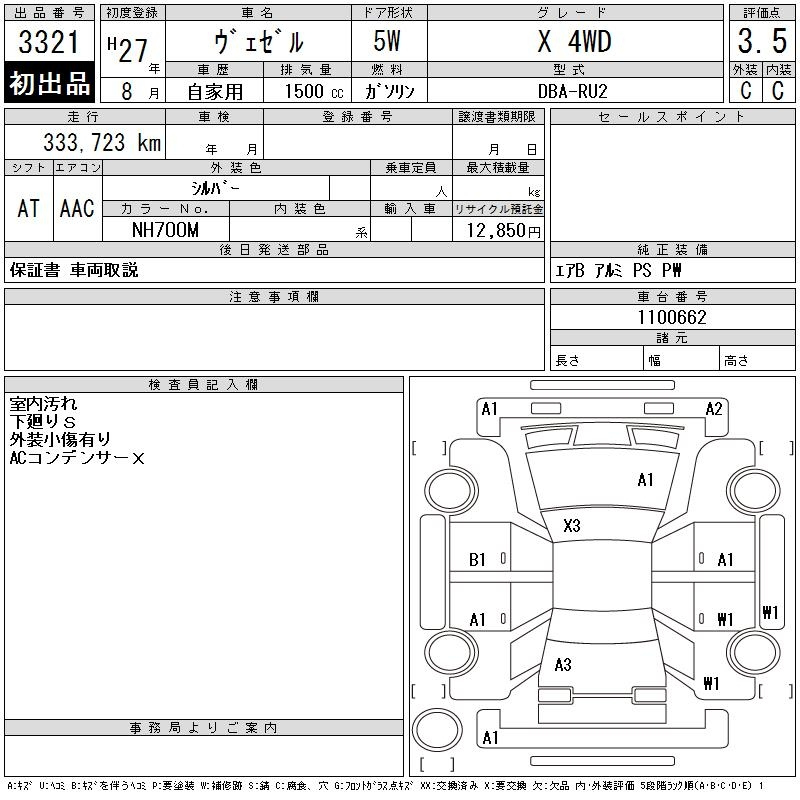 Аукцион в Японии: CAA Tohoku, лот: 3321: торги 22.04.2025 г HONDA VEZEL X 4WD 2015 года , оценка "3,5", авто из Японии, правый руль, пробег 335000 км, автомат, полный привод. Стартовая цена: 20000 иен. Примерно будет продан: 950 000 иен. Расшифровка аукционного листа бесплатно, возможен заказ платного отчета о истории данного авто в Японии. ___________________________________________ ✔️ Стоимость в г. Санкт - Петербурге (для личного использования), с учетом фрахта из Японии, комиссии брокера, таможенных сборов, утилизационных сборов, услуг склада СВХ и транспортировки в г. Санкт - Петербург (получение в г. Мурино, ст. метро Девяткино). Стоимость под ключ: 1508 000 рублей. _______________ ✅ Заказывайте, привезем, растаможим и доставим! Ленинградская область, г. Мурино, Шоссе в Лаврики, д. 33, офис 30Н, 📧1000bb@mail.ru, ☎️ +79808042362, @auto1000bb, сайт 1000bb.ru